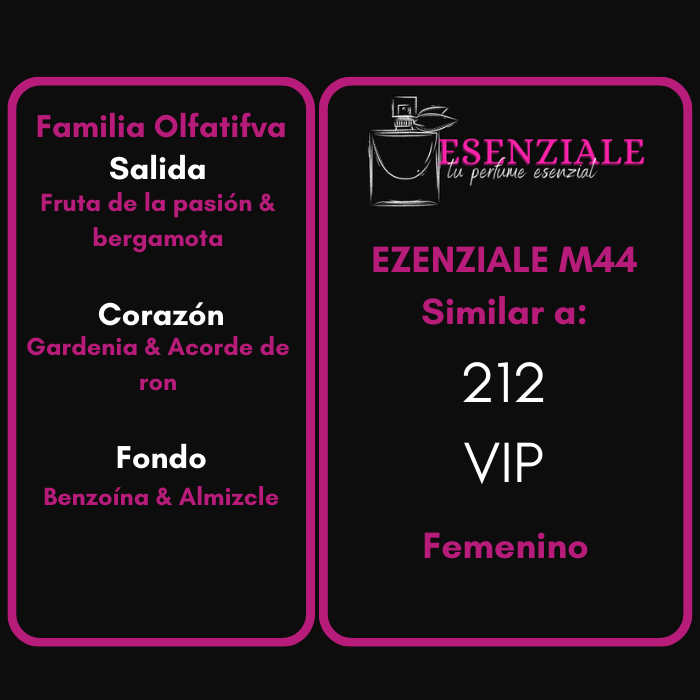 Similar a 212 VIP (Carolina Herrera) se define por un estimulante ron destilado de caña de azúcar y envejecido en barriles de roble. Esta dulce pero amaderada combinación evoluciona hacia notas de la exótica fruta de la pasión para convertirse en una fragancia rebosante de delicioso glamour.